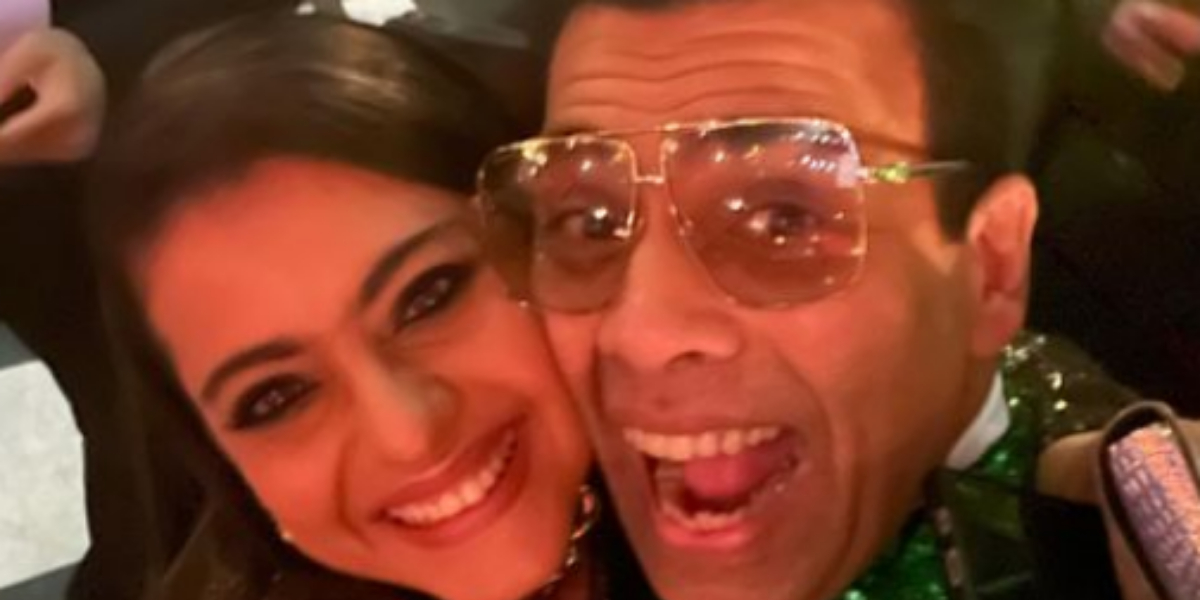 Kajol shared a heartwarming photo and wrote, “All teeth, smiles and glitter. Happy happy birthday @karanjohar . Love u.”