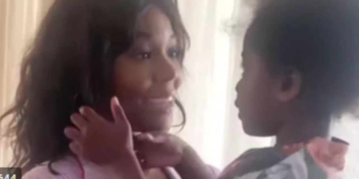 Kaavia says, “Yeah, I’m just loving your hair mommy.”