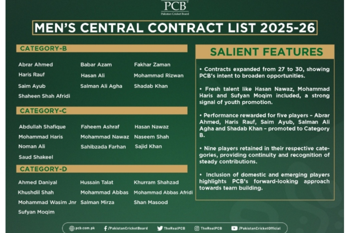 LAHORE: The Pakistan Cricket Board (PCB) has announced the central contracts for national cricketers for the 2025–26 season.