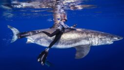 Two divers rescued five whale sharks entangled in a fishing net. The divers risked their safety to free the trapped...