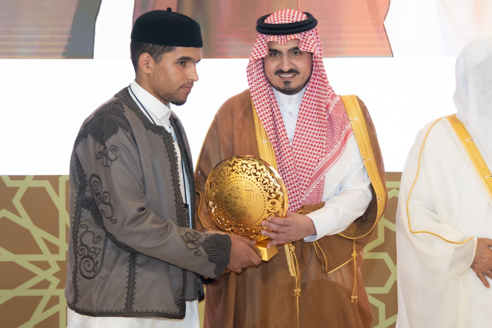At the beginning of the ceremony, Royal Highness and the attendees listened to recitations from some of the contestants, followed by a visual presentation about the competition, its objectives, and the developmental stages it has undergone in recent years, thanks to the outstanding organization by the Ministry of Islamic Affairs.